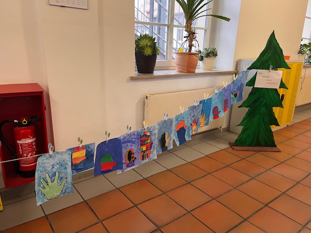 mit unserem Kunstprojekt "Wer vermisst etwas?" hat die Klasse 2c noch einmal im Schulhaus auf den hohen Bestand an Fundsachen aufmerksam gemacht. Außer eine große Anzahl an Mützen, Schals und Handschuhen sind auch Schirme, Taschen, Trinkflaschen, Schuhe und ein Ranzen gefunden worden, die ihren ehemaligen Besitzer suchen...