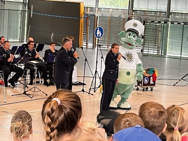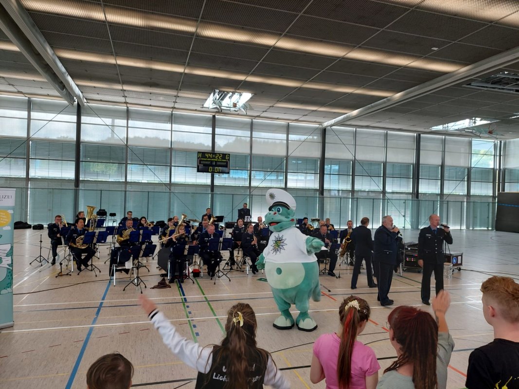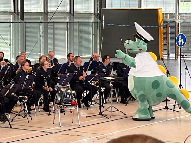 Natürlich besuchte das Konzert auch Poldi 🦕, der Kinderpolizist und begeisterte mit seinem Auftritt.