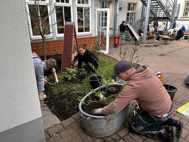 haben wir mit ca. 80 – 90 Kindern und Erwachsenen am vergangenen Samstag wieder einen ergebnisreichen Schulhof- und Schulgarteneinsatz hingelegt.