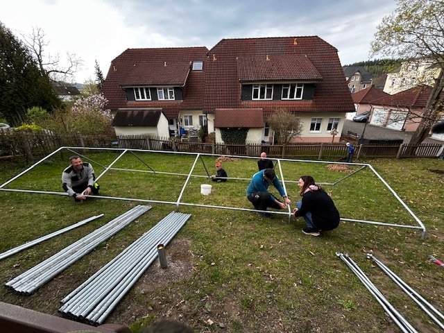 Die Umsetzung des Sandkastens zum Aufstellen eines Balancierbalkens brauchte ganzen körperlichen Einsatz...๐ช